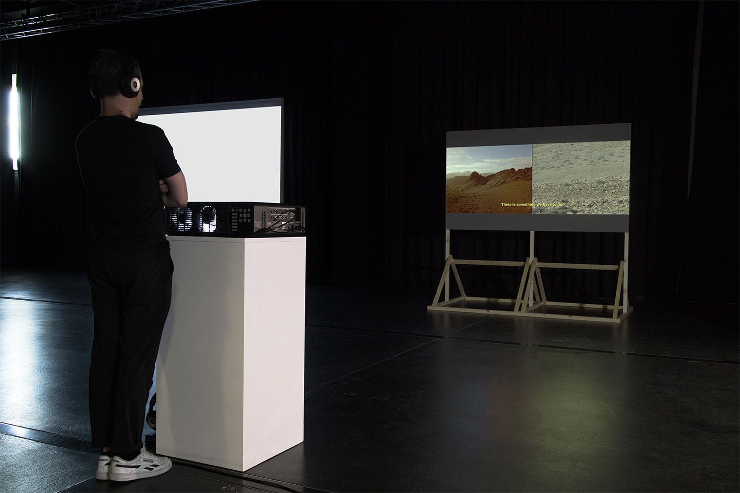Clear Ideas is a found footage work made by isolating landscapes from two science fiction films. Both films were shot on the island of Lanzarote, which plays a colonised Mars (left) and an apocalyptic Earth (right). Over the otherworldly terrains, a voice projects the words of private spaceflight industry leaders into the wind. The imagery and words collage dreams of spaceflight with nightmares of earthly collapse—a tension played upon in the visions of Elon Musk, Jeff Bezos and others. Here, Lanzarote becomes the stage, an analogue site where human progress and catastrophe are imagined in the same place.