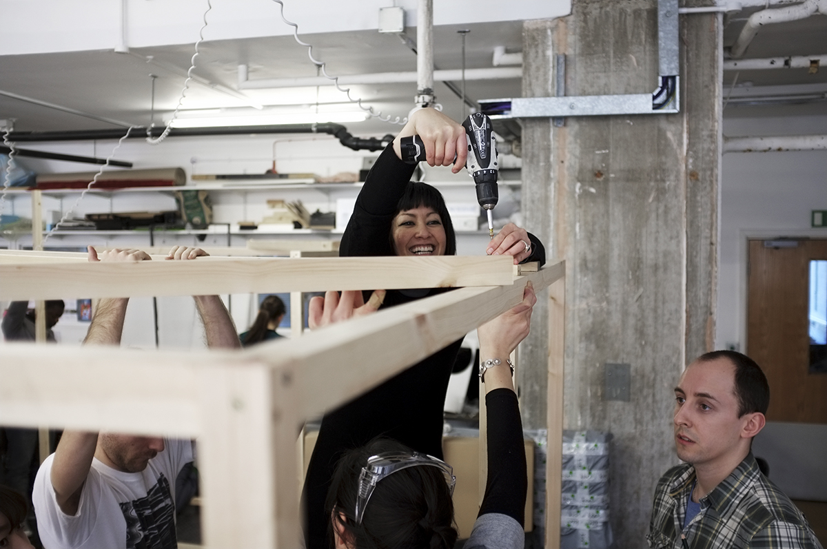 The workshop promotes an ethos of thinking through making—encouraging participants to work rapidly and iteratively in dynamic and playful studio atmospheres. In a short space of time (3–4 days) participants are able to produce immersive environments with lo-fi materials that are full of invention and character.
