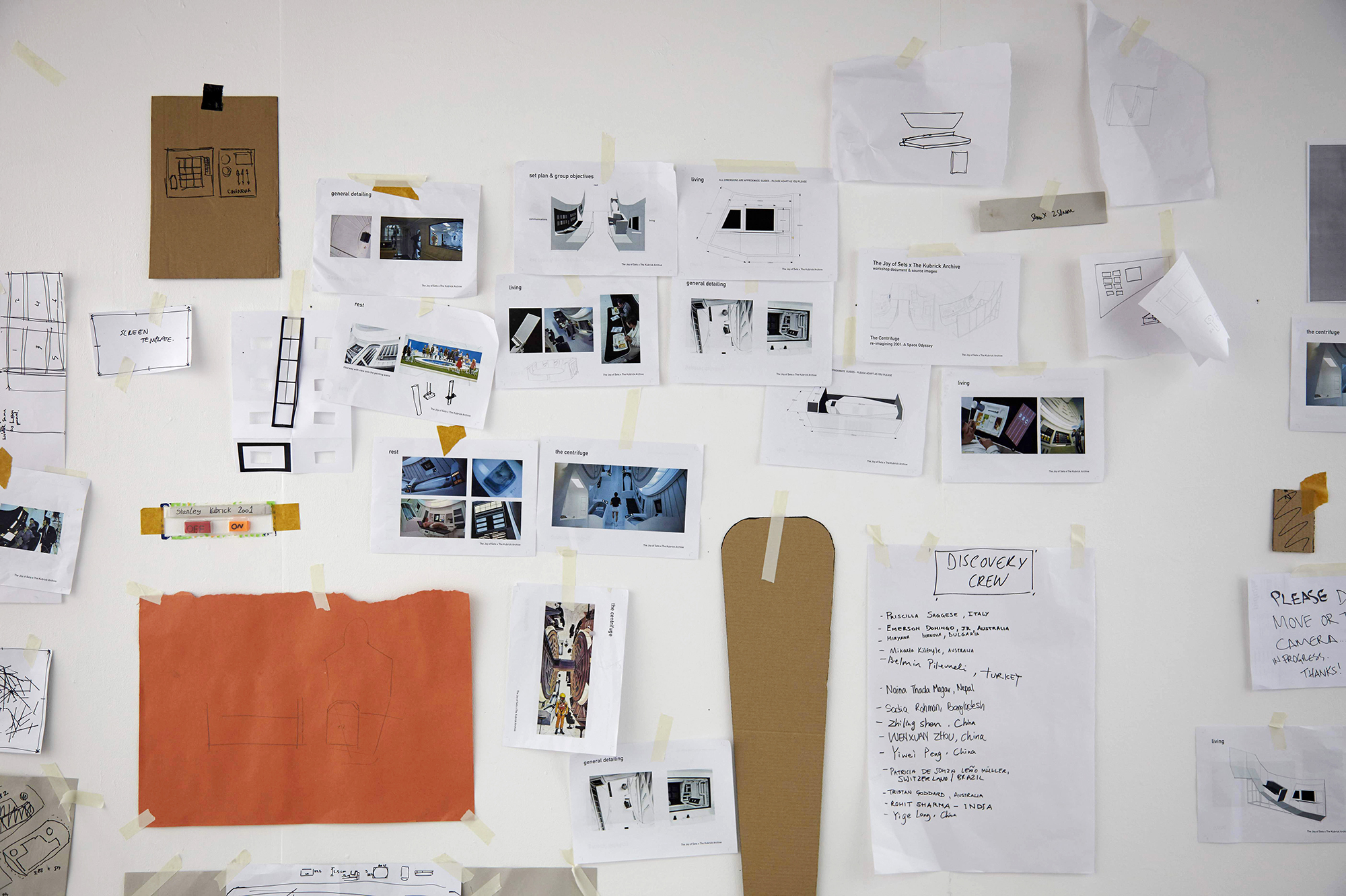 2001 was chosen for its spectacular achievements in production design and also for the incredible amount of archive material produced by Kubrick in researching the future of space travel. The centrifuge set is a focal point for multiple references relating to design fiction as a form of prototyping.